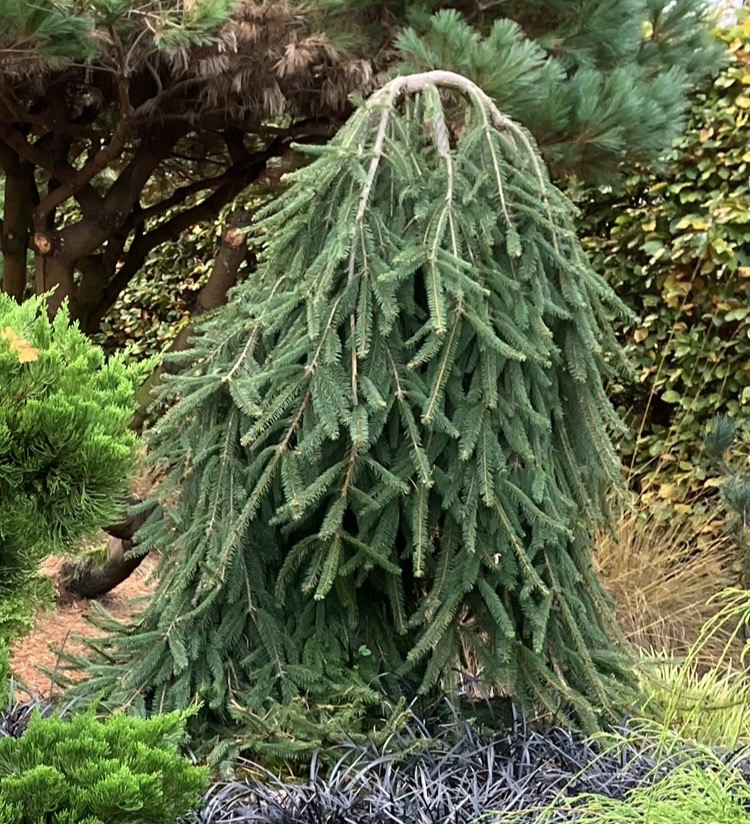 Hängande variant av vår vanliga Rödgran. Toppen binds upp till önskad höjd varpå granen inte blir högre. Trolskt utseende, Kan bli 2-5 m hög. Sol-halvskugga. Lättodlad. Zon V