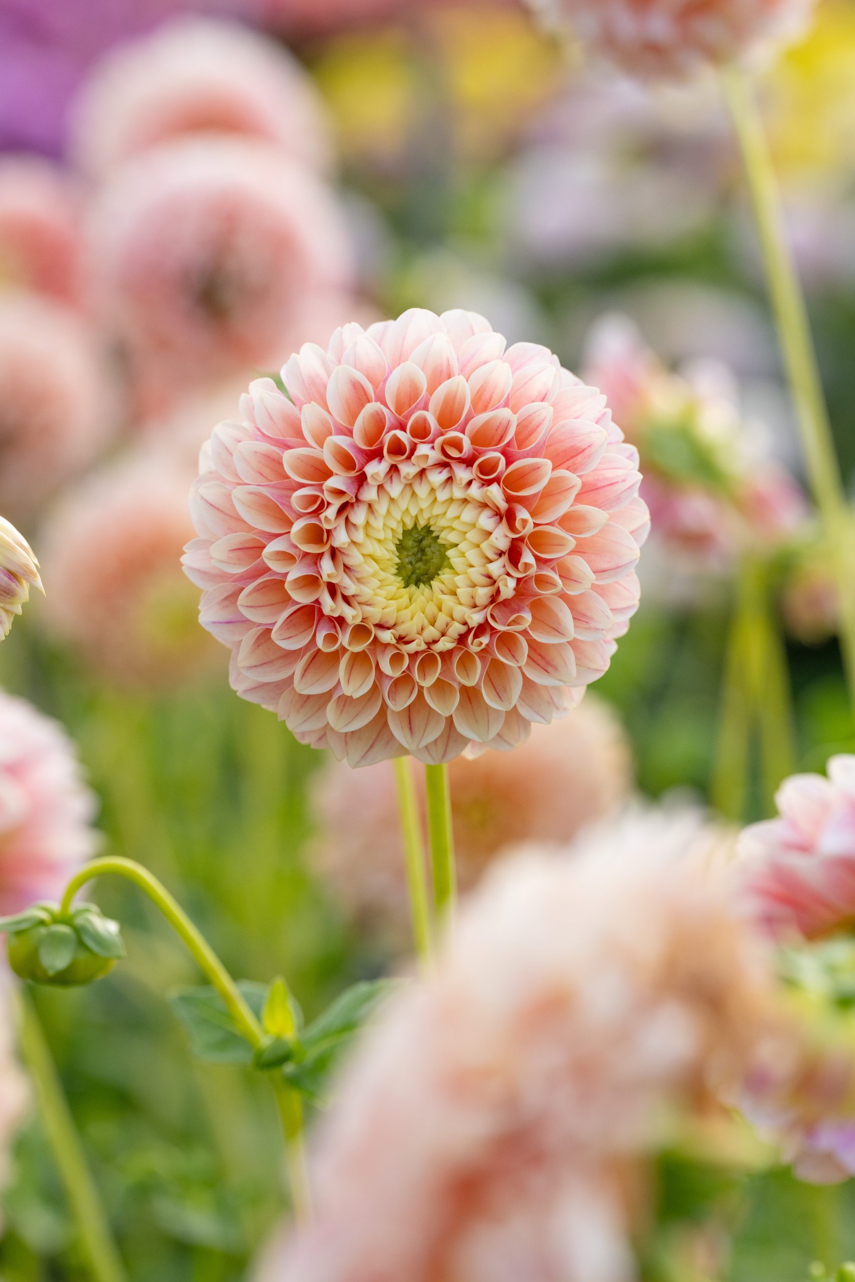 Vackra runda blommor i aprikos-gult, blommorna är ca 9 cm i diameter och plantan blir ca 110 cm . Sorten är mycket blom-villig och är exemplarisk till snittblomsproduktion.